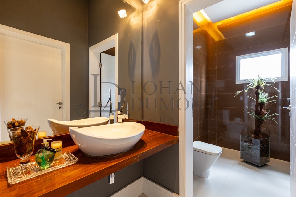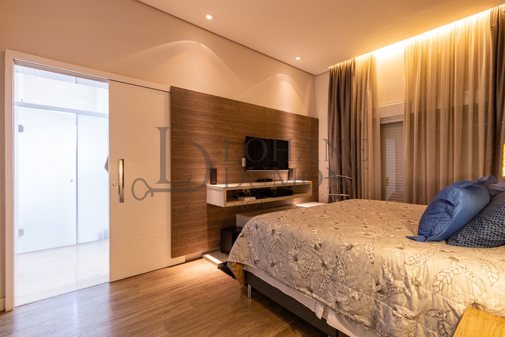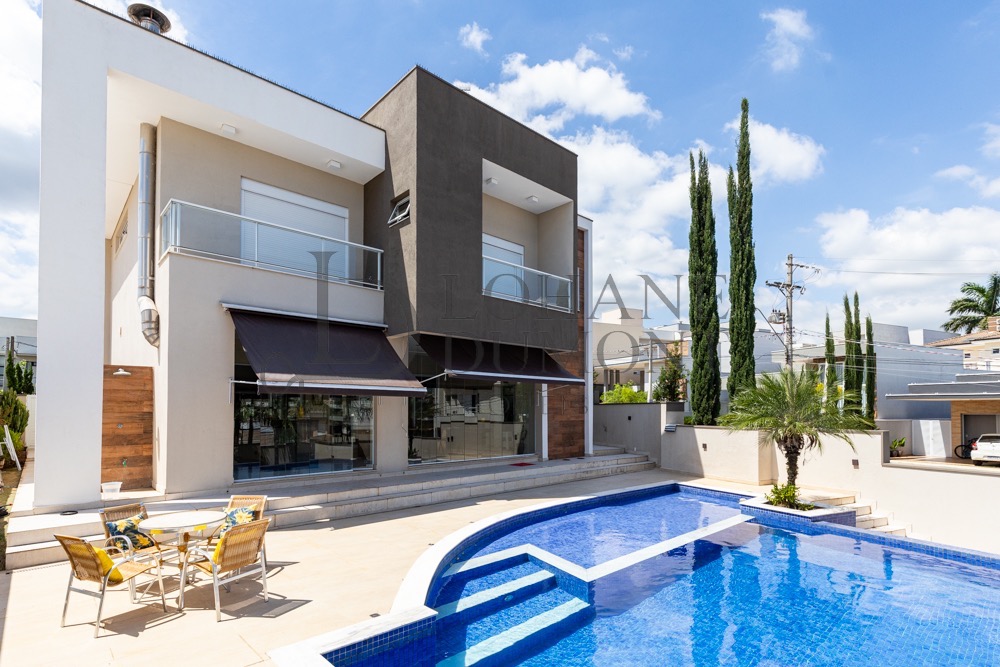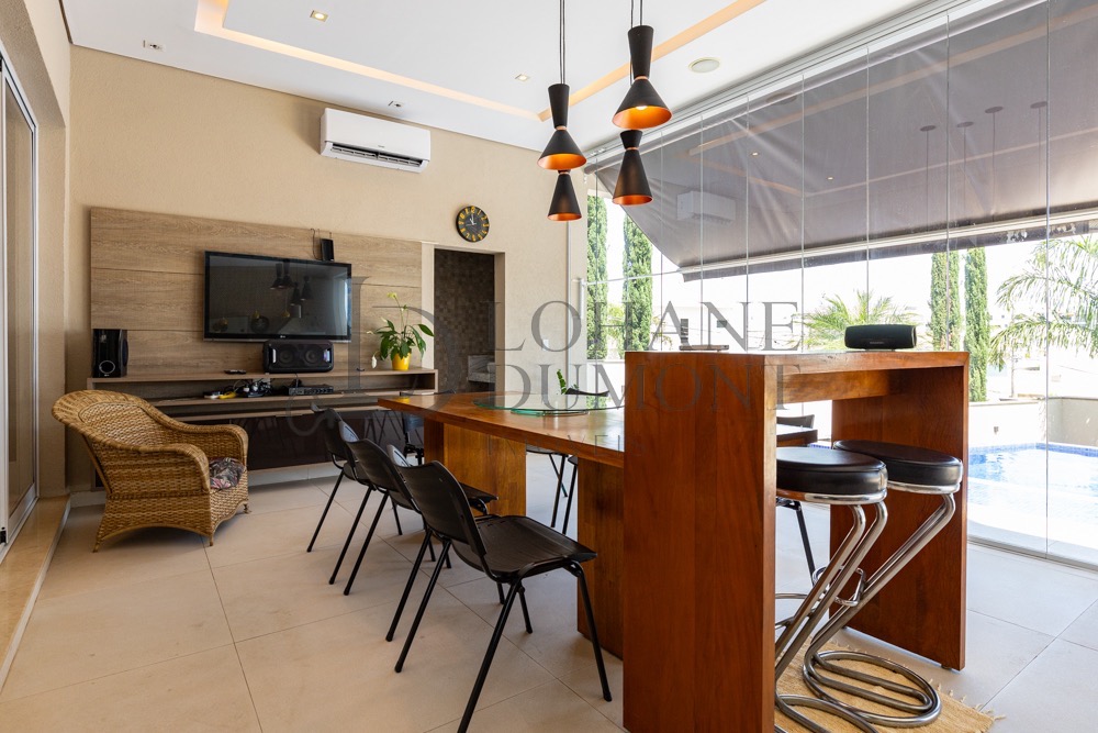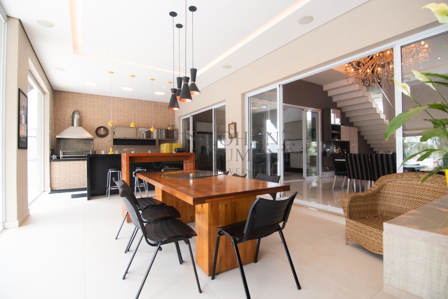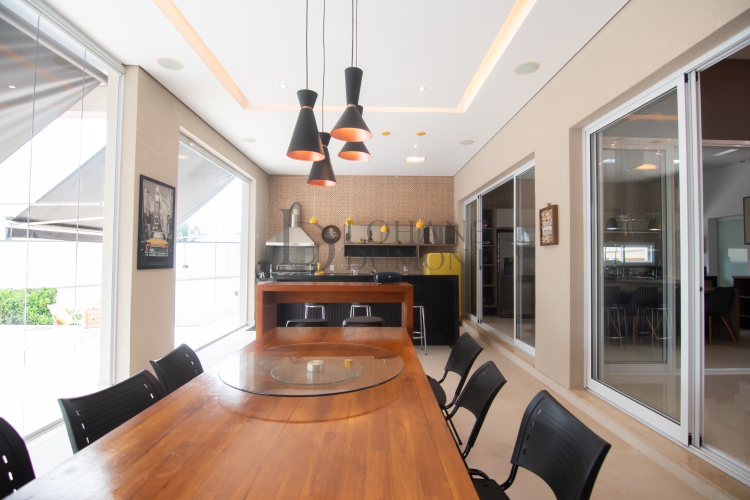 A área externa foi projetada para proporcionar lazer completo, com espaço gourmet envidraçado, piscina com prainha e borda infinita e banheiro de apoio externo. O imóvel conta ainda com garagem para seis veículos, sendo três vagas cobertas, oferecendo segurança e comodidade.