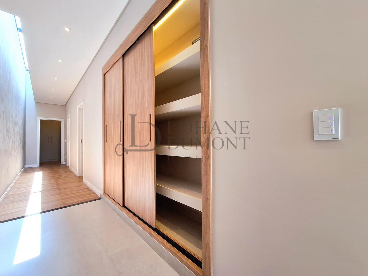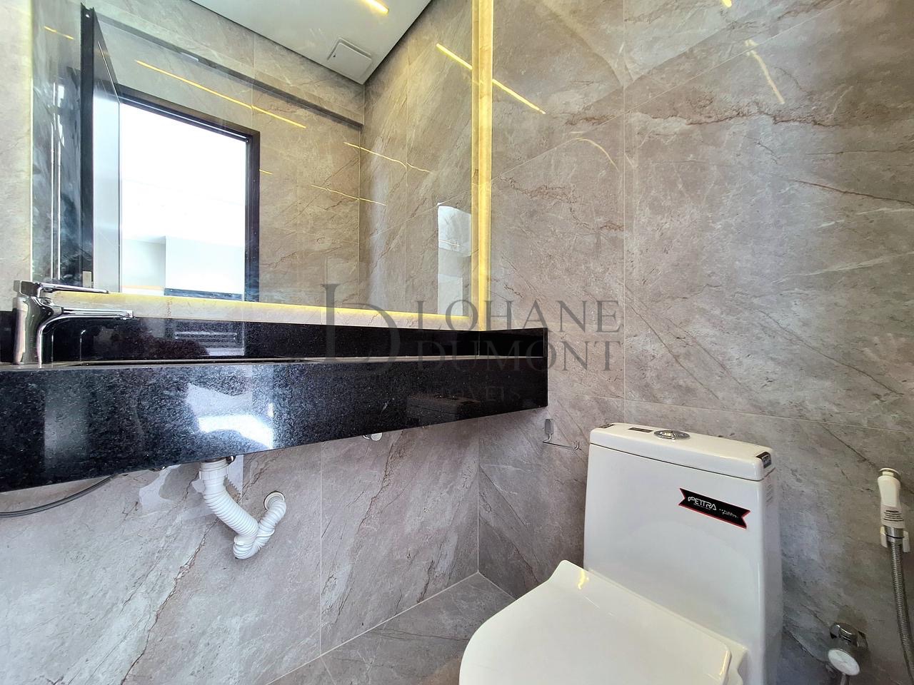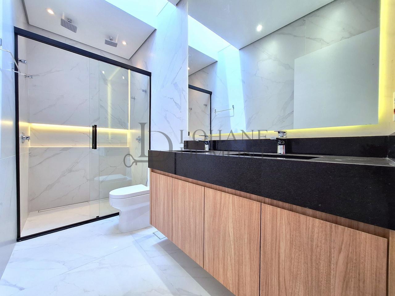 A casa conta ainda com móveis planejados, iluminação em LED, automação, aquecimento solar, esquadrias pretas e acabamentos que reforçam o alto padrão do imóvel. A área de serviço é privativa e planejada, garantindo organização e praticidade.