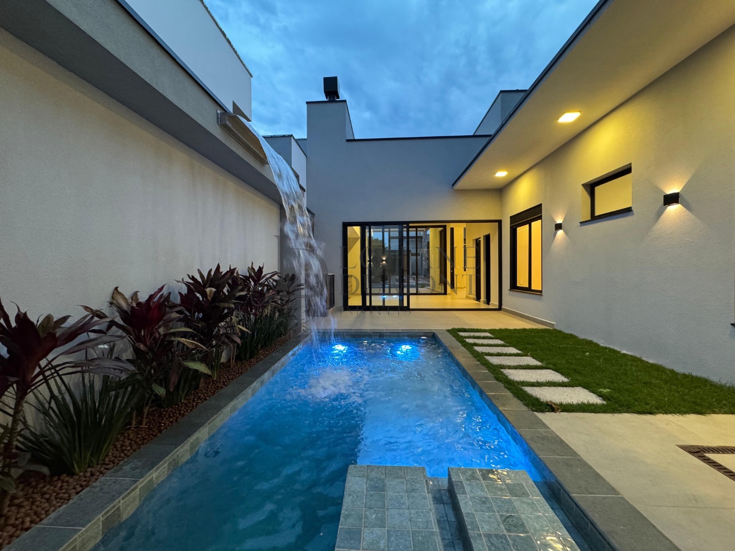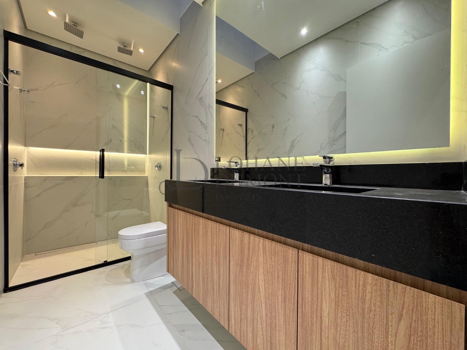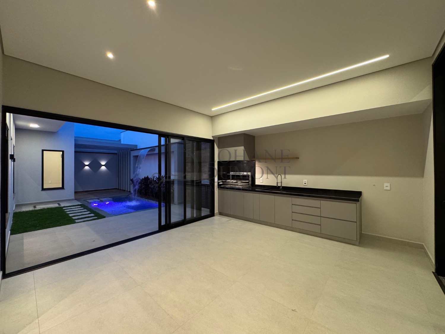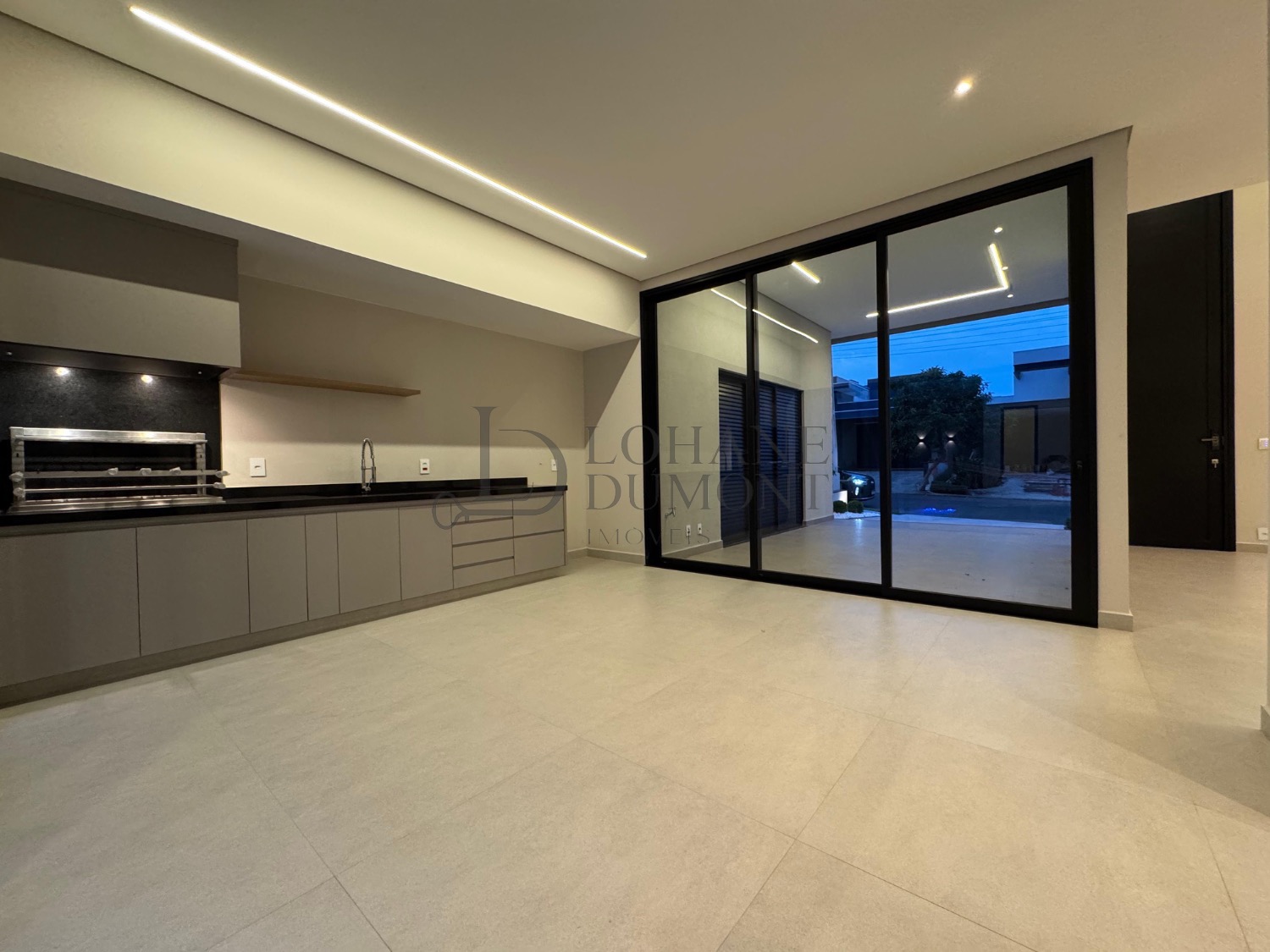 A casa conta ainda com móveis planejados, iluminação em LED, automação, aquecimento solar, esquadrias pretas e acabamentos que reforçam o alto padrão do imóvel. A área de serviço é privativa e planejada, garantindo organização e praticidade.