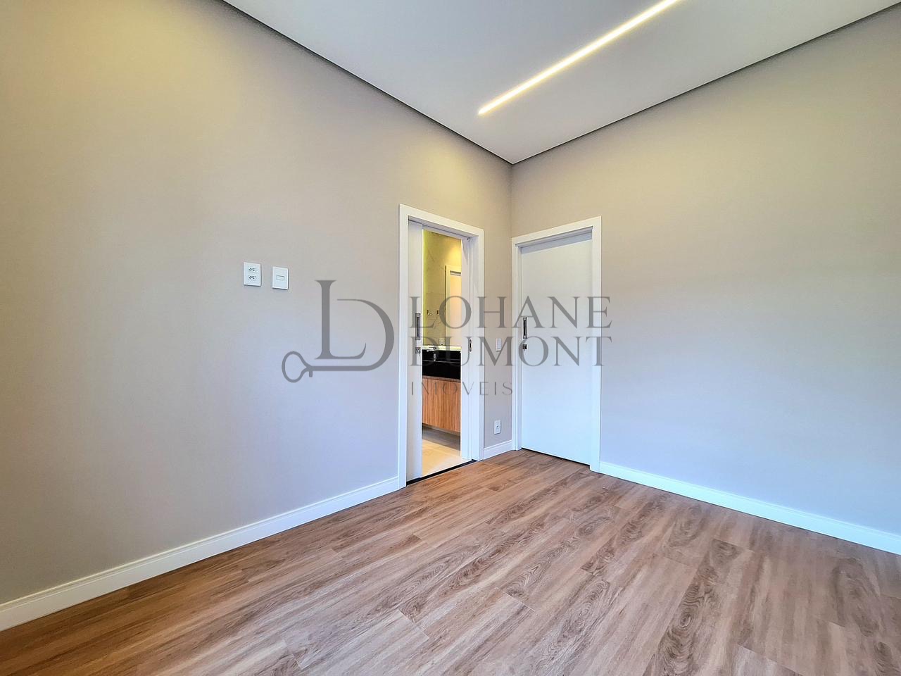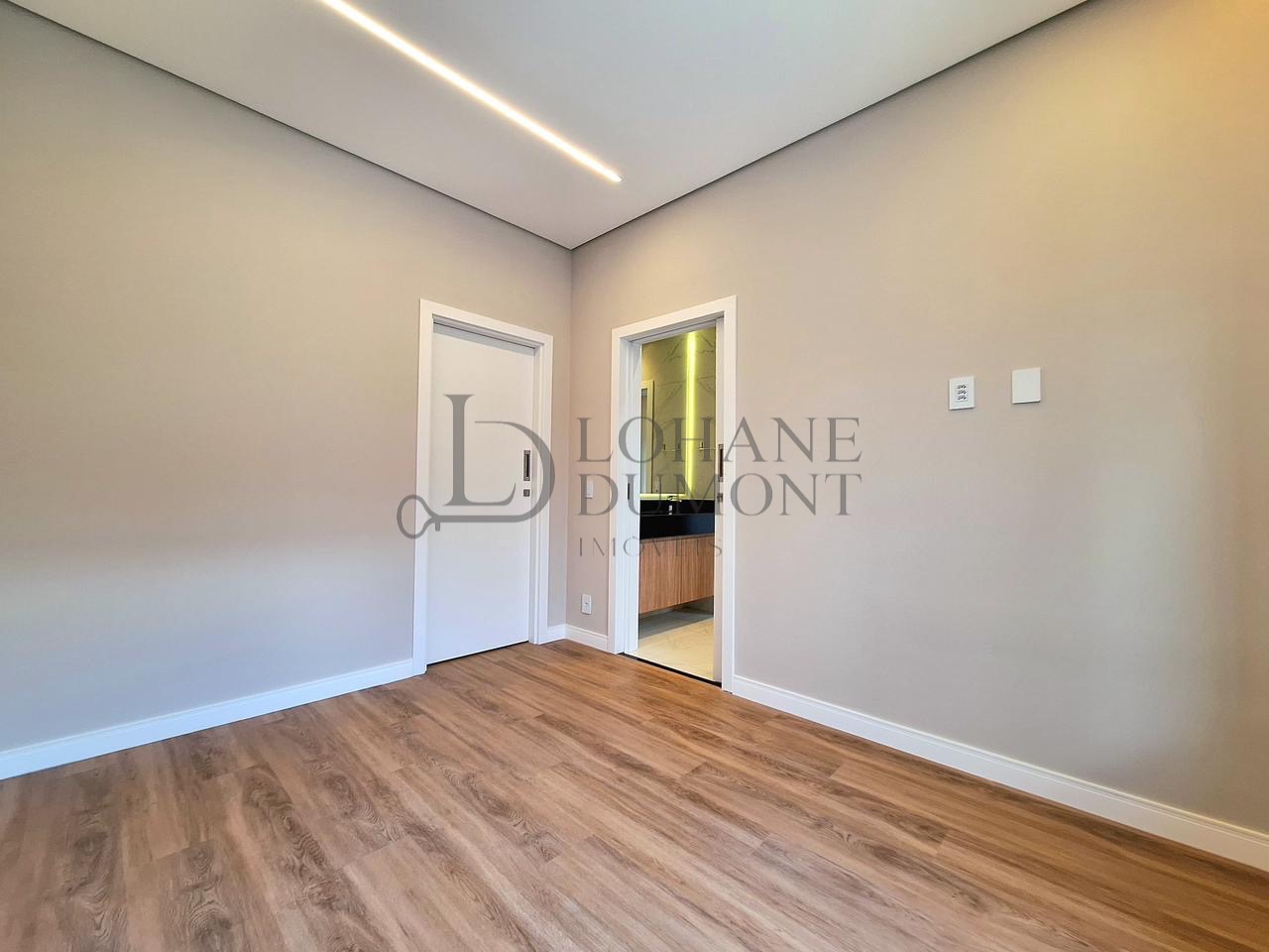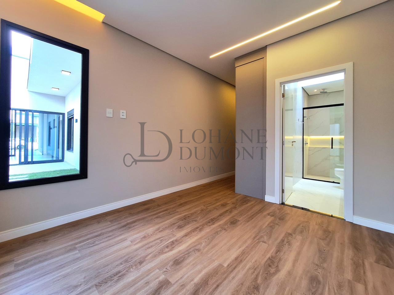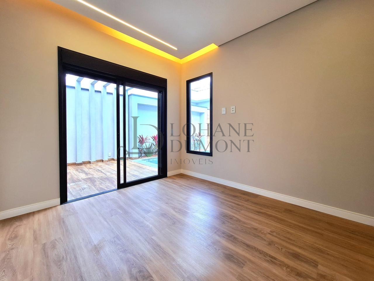 O imóvel apresenta uma planta inteligente, com três dormitórios bem distribuídos, sendo uma suíte com closet e porta balcão voltada para a área externa, além de uma demi-suíte que amplia a praticidade no dia a dia. A área social impressiona pela sala com pé-direito duplo, que proporciona amplitude, iluminação natural e um visual moderno.