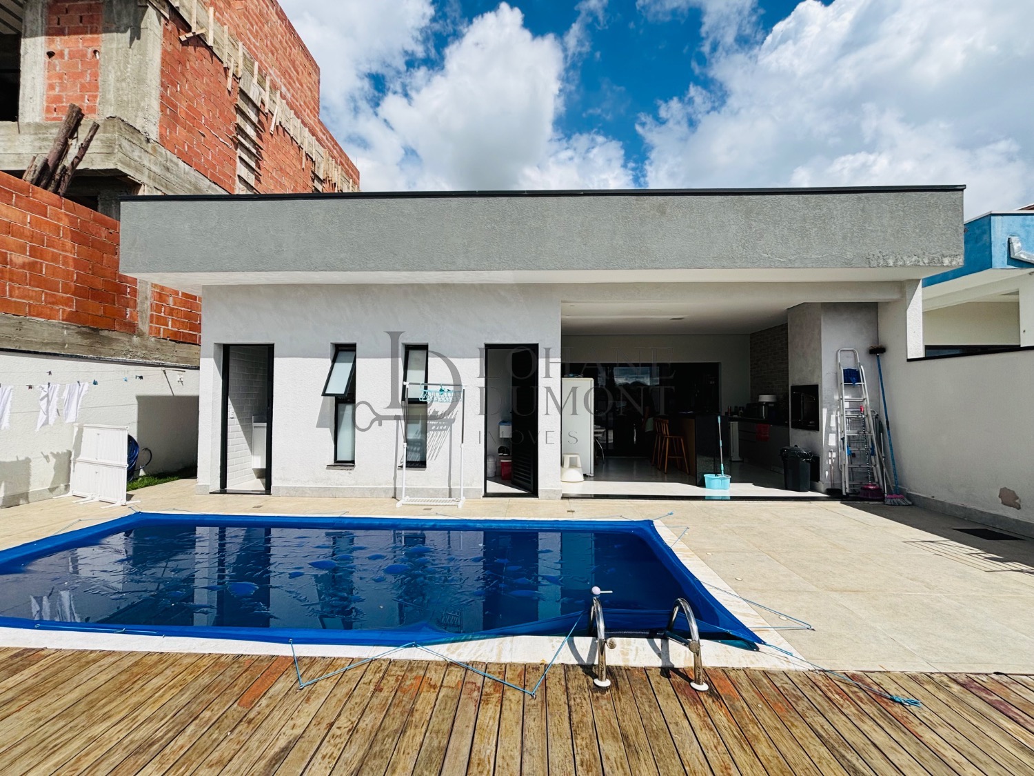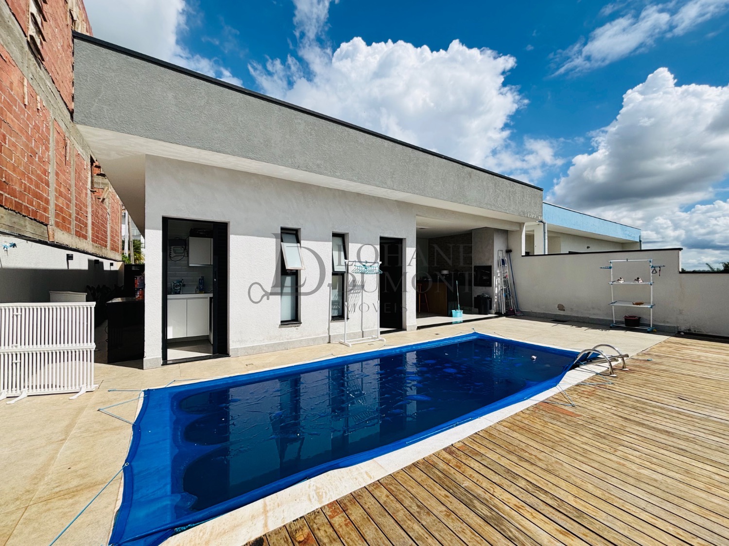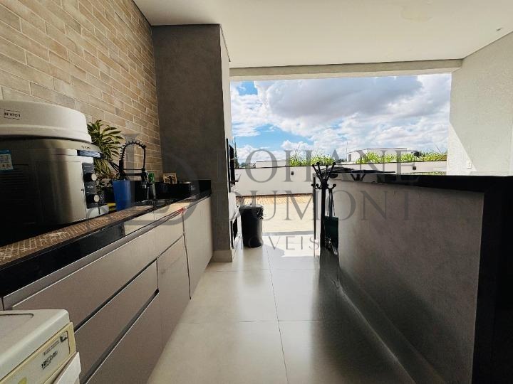 Com 210m² de construção, sendo 3 suítes, escritório, sala com pé direito alto, cozinha moderna e repleta de armários, espaço gourmet com churrasqueira e piscina aquecida.