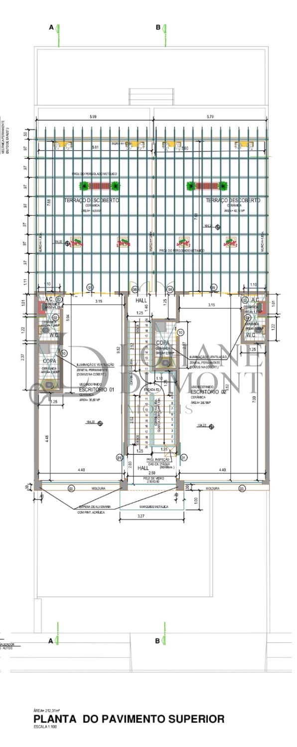 No pavimento superior, o prédio conta com dois escritórios corporativos amplos, cada um com sala generosa que permite diversas configurações de layout, copa privativa, banheiro social, área técnica para climatização, ótima iluminação com luz natural e conforto visual, além de acesso a terraços descobertos que funcionam como áreas de respiro e convivência. Um pavimento pensado para operações administrativas, clínicas, consultorias, empresas de tecnologia ou sedes corporativas que buscam sofisticação e funcionalidade.